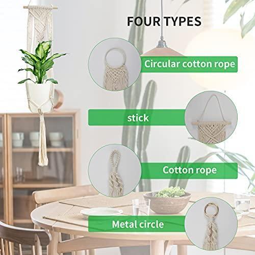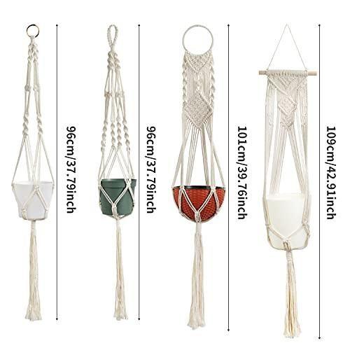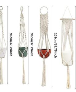 Birinci sınıf pamuk ipten özel olarak dokunan saksılıklar, 15-25 cm çapındaki saksılarınız için tasarlanmıştır. Set içerisinde 4 farklı stilde toplam 6 adet saksılık bulunur. Saksılıkların uzunlukları 104-117 cm arasında değişmektedir.
