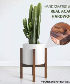 Dayanıklı akasya ağacından üretildiği için yıllarca kullanılabilir. Ahşabın doğal tonları, beyaz saksılarla hoş bir kontrast oluşturur. Bitkilerinizi yerden yükselterek hem onları daha iyi sergilemenizi sağlar hem de zemini nemden korur.