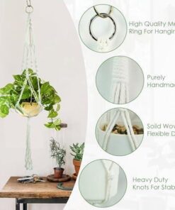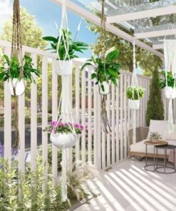 Fildişi rengindeki saksı askıları, 12 farklı model ve boyut seçeneği sunar. Farklı ebatlardaki saksılarınızı güvenle taşıyabilir. Dayanıklı jüt malzeme sayesinde uzun yıllar form kaybı yaşamadan kullanılabilir.