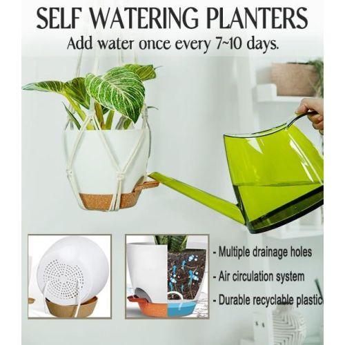 Yüksek kaliteli PP plastikten üretilen saksılar, emici ip sistemi ve su haznesi ile donatılmıştır. Fazla su alt hazneye depolanır. Bitkiler suyu ip sistemi veya kökleri aracılığıyla çeker. Bu sayede seyahate çıktığınızda bile bir hafta veya daha uzun süre bitkilerinizin sulanması konusunda endişelenmenize gerek kalmaz.