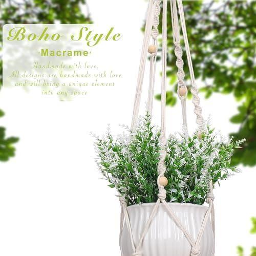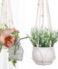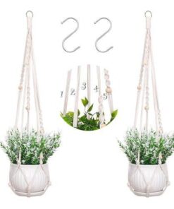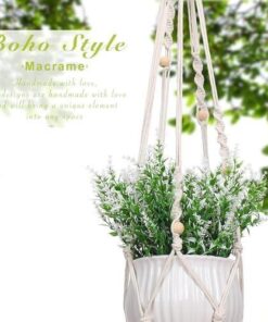 Dekoratif Makrome Bitki Askısı, bitkilerinizi şık bir şekilde sergilemenizi sağlar. 90 cm uzunluğundaki tasarım, 23 cm çapa kadar olan saksılar için uygundur. Sağlam ferforje halka ve 5 kollu örgü sistemi, saksınızı güvenle tutar.