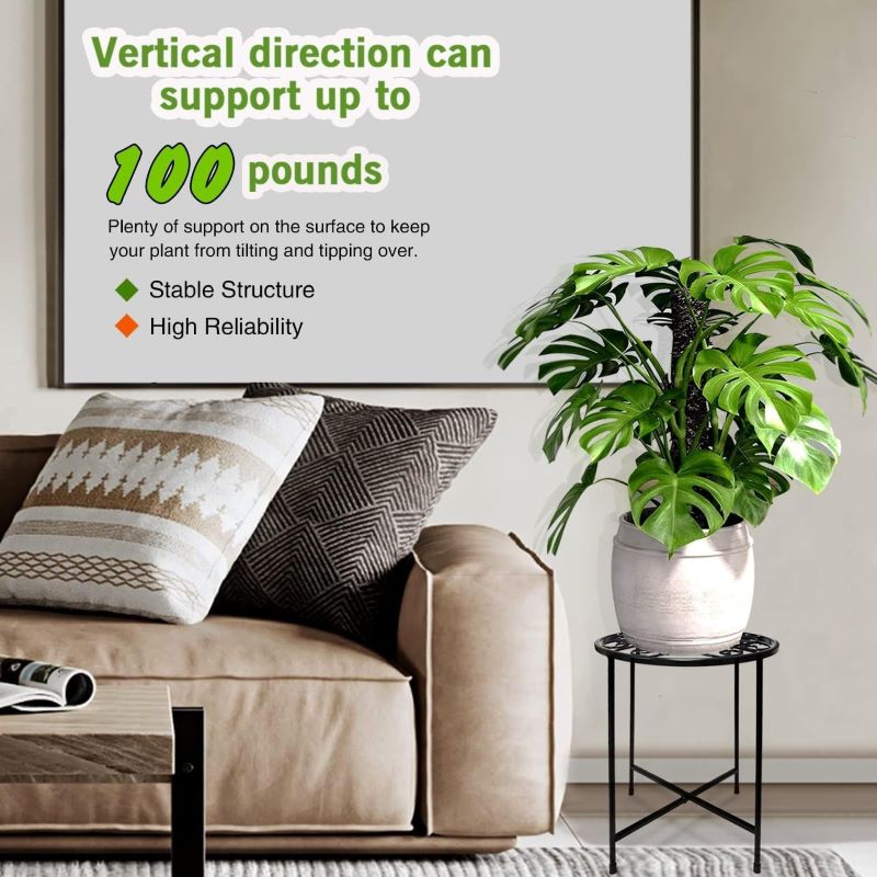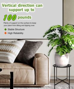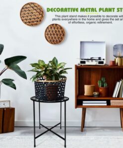 Her iki stand üzerinde yer alan geniş tablalar, farklı boyutlardaki saksılarınızı güvenle taşır. Ferforjenin siyah rengi, üzerine konulacak her türlü bitkiyle uyum sağlar. Minimal ve şık tasarımı, modern ve klasik dekorasyonlara kolayca uyum sağlar.