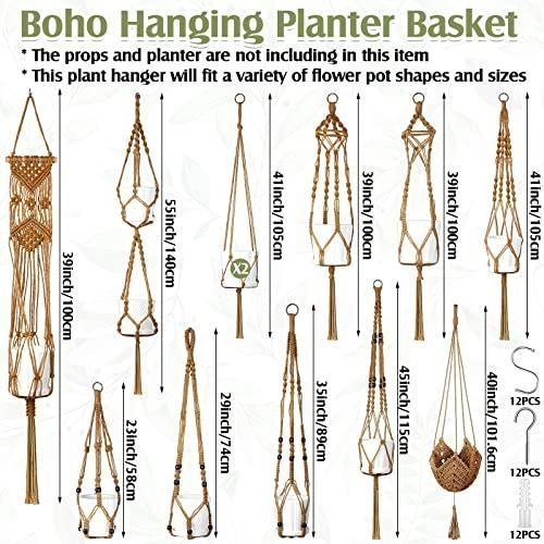 Bitkilerinize özel tasarlanmış 12 farklı makrome saksı askısı ile evinizi yeşillendirin. Dayanıklı jut ipten örülen bu makrome saksılıklar, uzun yıllar kullanılabilir. Her biri özgün desenlere sahip 12 adet askı, farklı boyutlardaki saksılarınız için uygundur.