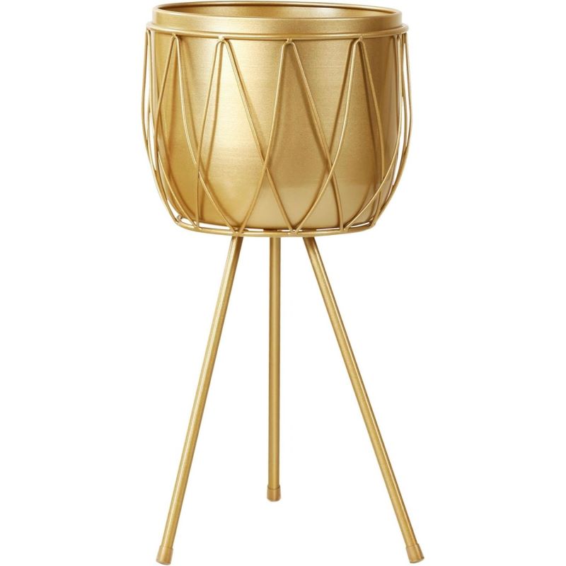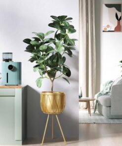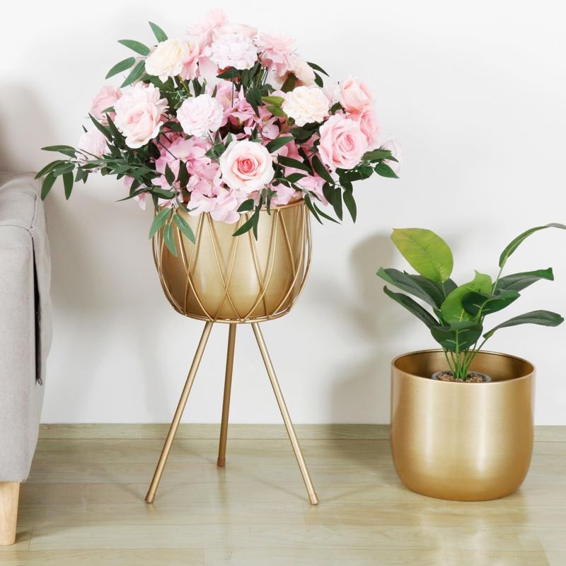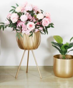Bu zarif çiçeklik, modern tasarımı ve altın rengiyle dikkat çekiyor. 60 cm yüksekliğindeki ürün, üç ayaklı sağlam bir yapıya sahiptir. Geometrik desenlerle süslenmiş dış yüzeyi, dekoratif bir görünüm oluşturur.