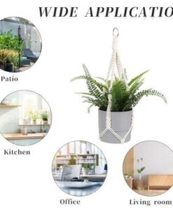 El örgüsü Bohem tarzıyla modern ve klasik dekorasyonlara kusursuz uyum sağlar. Dayanıklı pamuk ipi sayesinde yıllarca kullanılabilir. Esnek örgü yapısı seramik, metal, plastik ve cam saksılarınızı kolayca kavrar.
