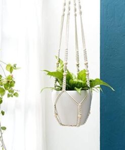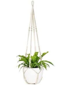 Doğal pamuk ipinden örülmüş, fil dişi rengindeki asılabilir saksılık modern ve vintage tarzını bir arada sunuyor. El yapımı örgü deseni sayesinde farklı boy ve şekillerdeki saksılarınızı güvenle taşır. 110 cm uzunluğundaki bu saksılık, 30 cm çapa kadar olan saksılarınız için uygundur.