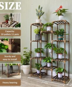 Bu 10 raflı ahşap çiçeklik, evinizde yeşil bir cennet yaratmak için harika bir üründür. 86x29x119 cm boyutlarındaki geniş yapısı sayesinde çok sayıda bitkiye ev sahipliği yapabilir. Masif ahşaptan üretildiği için sağlam ve dayanıklıdır, 68 kg’a kadar yük taşıyabilir.