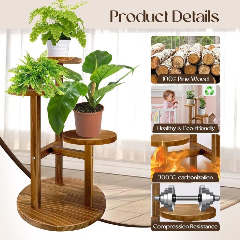 Doğal ahşap yapısı sayesinde yıllarca kullanılabilir. Özellikle ev bitkilerinizi kademeli olarak sergilemek için tasarlanmış bu ürün, kompakt boyutları sayesinde küçük alanlarda bile rahatlıkla kullanılabilir.